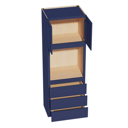 Venus CabinetryHB-OC3396: Indigo Blue Shaker 33"W x 96"H x 24"D 2 Doors & 3 Drawers Tall Oven Shelf Cabinets