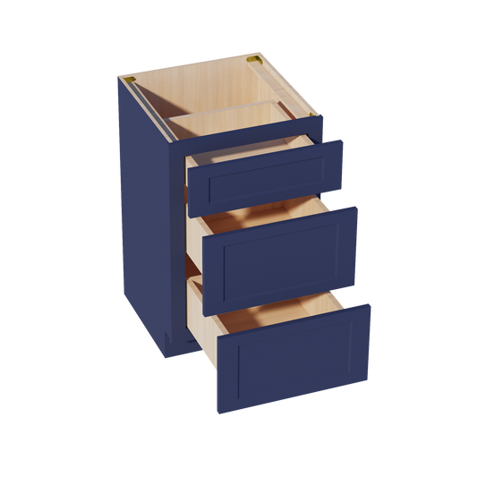Venus CabinetryHB-VDB1521: Indigo Blue Shaker 15"W x 34-1/2"H x 21"D 3 Drawers Vanity Base Cabinets