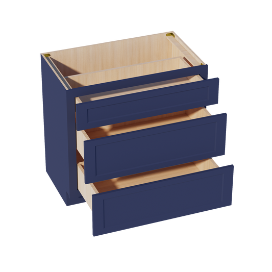 Venus CabinetryHB-VDB3021: Indigo Blue Shaker 30"W x 34-1/2"H x 21"D 3 Drawers Vanity Base Cabinets
