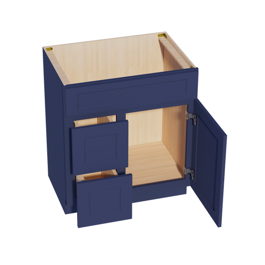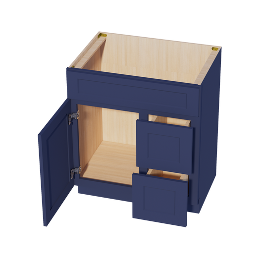 Venus CabinetryHB-VSD3021R: Indigo Blue Shaker 30"W x 34-1/2"H x 21"D 1 Door & 2 Right Drawers Offset Vanity Sink Base Cabinets