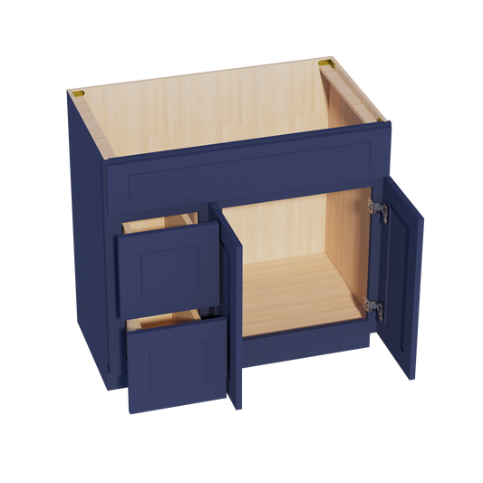 Venus CabinetryHB-VSD3621R: Indigo Blue Shaker 36"W x 34-1/2"H x 21"D 2 Doors & 2 Right Drawers Offset Vanity Sink Base Cabinets