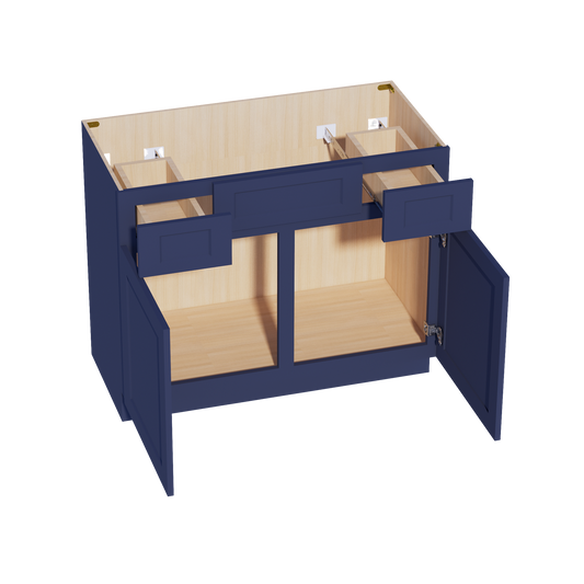 Venus CabinetryHB-VSD4221: Indigo Blue Shaker 42"W x 34-1/2"H x 21"D 2 Doors, 2 Drawers & 1 False Drawer Centered Vanity Sink Base Cabinets