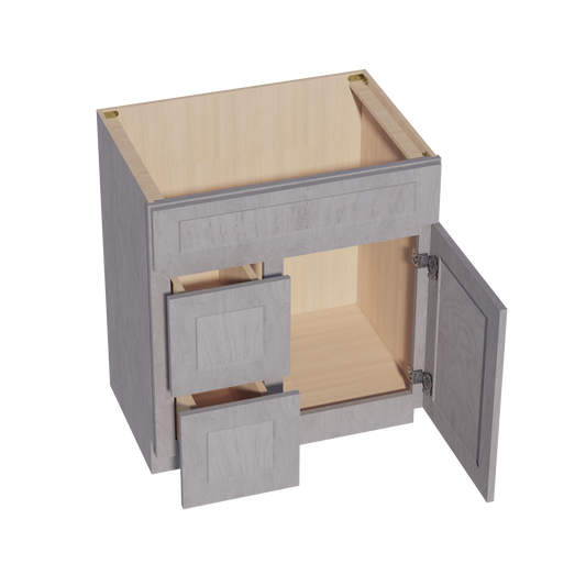 Venus CabinetryHLG-VSD3021R: Light Gray Shaker 30"W x 34-1/2"H x 21"D 1 Door & 2 Right Drawers Offset Vanity Sink Base Cabinets