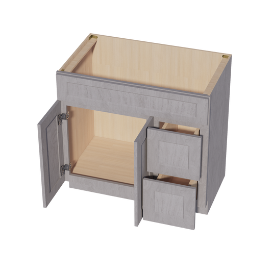Venus CabinetryHLG-VSD3621R: Light Gray Shaker 36"W x 34-1/2"H x 21"D 2 Doors & 2 Right Drawers Offset Vanity Sink Base Cabinets