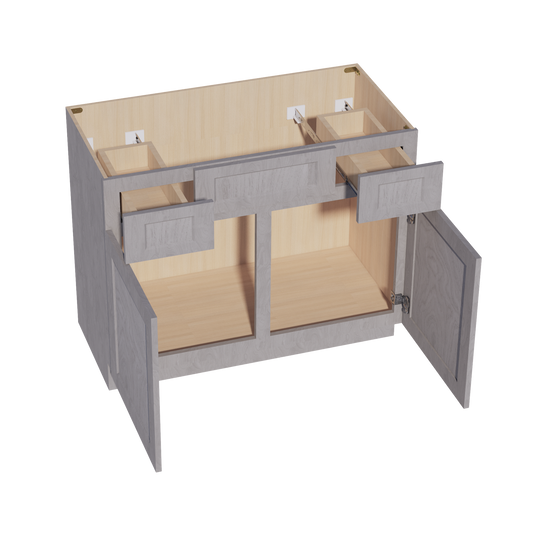Venus CabinetryHLG-VSD4221: Light Gray Shaker 42"W x 34-1/2"H x 21"D 2 Doors, 2 Drawers & 1 False Drawer Centered Vanity Sink Base Cabinets