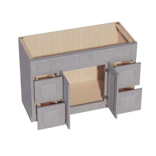 Venus CabinetryHLG-VSD4821: Light Gray Shaker 48"W x 34-1/2"H x 21"D 2 Doors, 4 Drawers & 1 False Drawer Centered Vanity Sink Base Cabinets