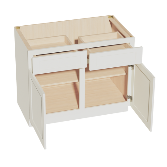 Venus CabinetryTW-B42: Creamy White Shaker 42" 2 Drawers 2 Doors Standard Base Cabinet