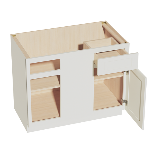 Venus CabinetryTW-BBC42/45: Creamy White Shaker 42" 1 Door - 1 Drawer Blind Corner Base Cabinets