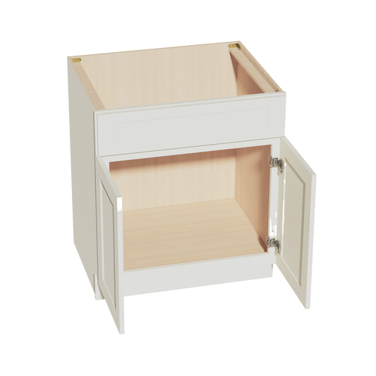 Venus CabinetryTW-SB30: Creamy White Shaker 30" 2 Doors 1 False Drawer Sink Base Cabinet