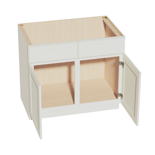 Venus CabinetryTW-SB39: Creamy White Shaker 39" 2 Doors 2 False Drawers Sink Base Cabinet