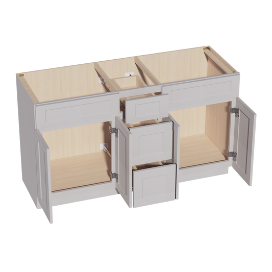 Venus CabinetryHA-VSD60DOUBLE: Ash Gray Shaker 60"W x 34-1/2"H x 21"D 4 Doors, 3 Drawers & 2 False Drawers Double Sink Vanity Base Combo Cabinets