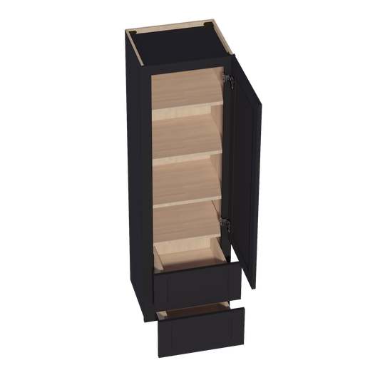 Venus CabinetryHE-WD1848: Ebony Black Shaker 18"W x 48"H 1 Door & 2 Drawers Special Wall Cabinet