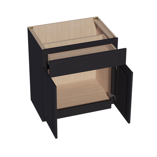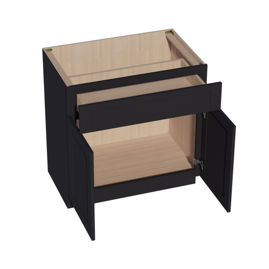 Venus CabinetryHE-VB3021: Ebony Black Shaker 30"W x 34-1/2"H x 21"D 2 Doors & 1 Drawer Double Door Vanity Base Cabinets
