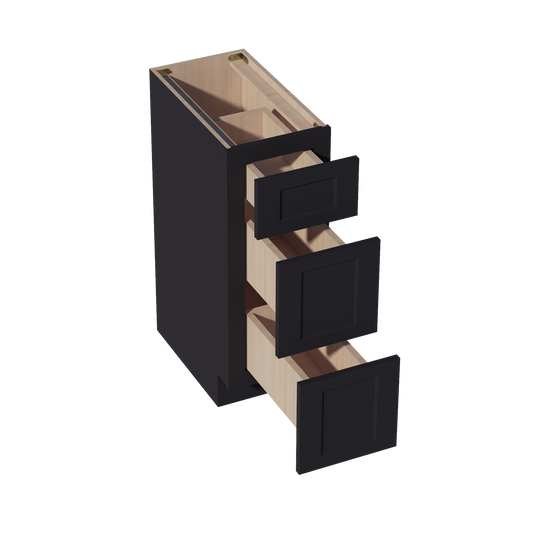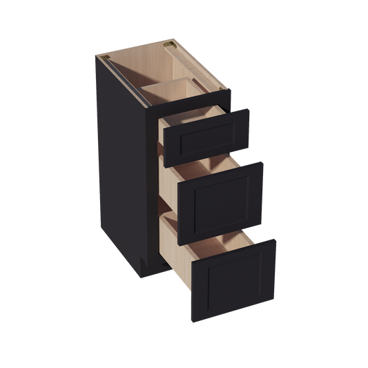 Venus CabinetryHE-VDB1221: Ebony Black Shaker 12"W x 34-1/2"H x 21"D 3 Drawers Vanity Base Cabinets