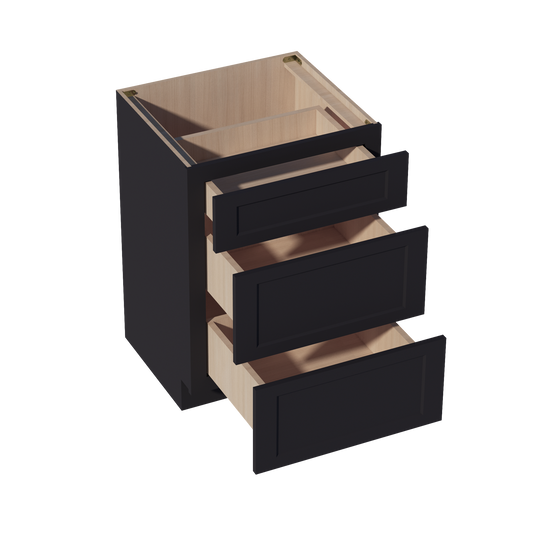 Venus CabinetryHE-VDB1821: Ebony Black Shaker 18"W x 34-1/2"H x 21"D 3 Drawers Vanity Base Cabinets