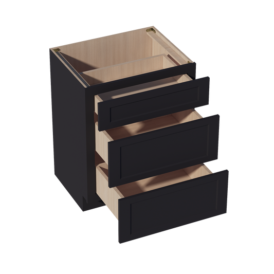 Venus CabinetryHE-VDB2421: Ebony Black Shaker 24"W x 34-1/2"H x 21"D 3 Drawers Vanity Base Cabinets