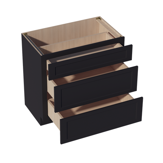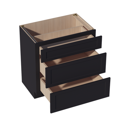 Venus CabinetryHE-VDB3021: Ebony Black Shaker 30"W x 34-1/2"H x 21"D 3 Drawers Vanity Base Cabinets
