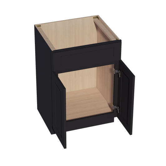 Venus CabinetryHE-VSB2421: Ebony Black Shaker 24"W x 34-1/2"H x 21"D 2 Doors & 1 False Drawer Vanity Sink Base Cabinets