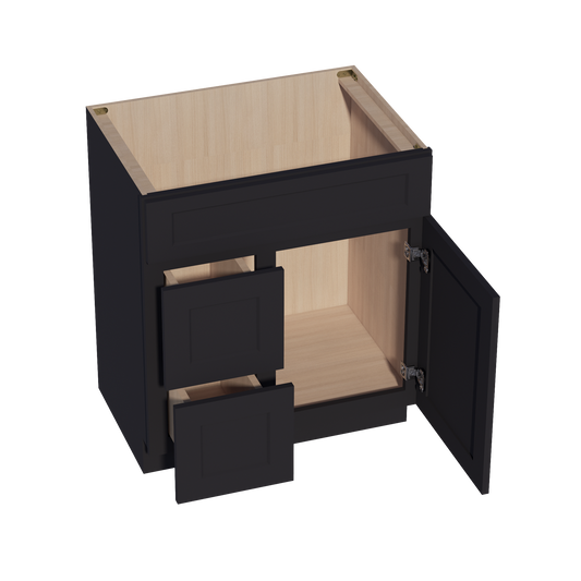 Venus CabinetryHE-VSD3021R: Ebony Black Shaker 30"W x 34-1/2"H x 21"D 1 Door & 2 Right Drawers Offset Vanity Sink Base Cabinets