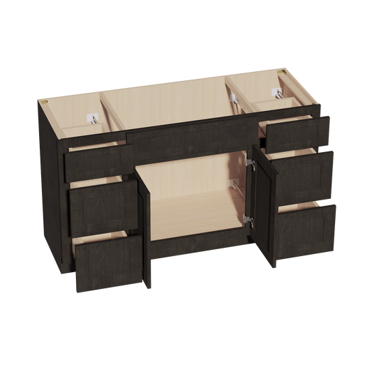 Venus CabinetryHG-VSD60DOUBLE: Dark Gray Shaker 60"W x 34-1/2"H x 21"D 4 Doors, 3 Drawers & 2 False Drawers Double Sink Vanity Base Combo Cabinets