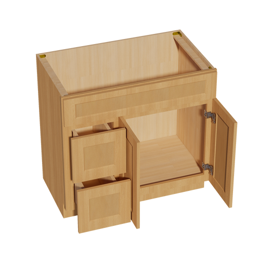 Venus CabinetryHT-VSD3621L: Timber Wood Shaker 36"W x 34-1/2"H x 21"D 2 Doors & 2 Left Drawers Offset Vanity Sink Base Cabinets