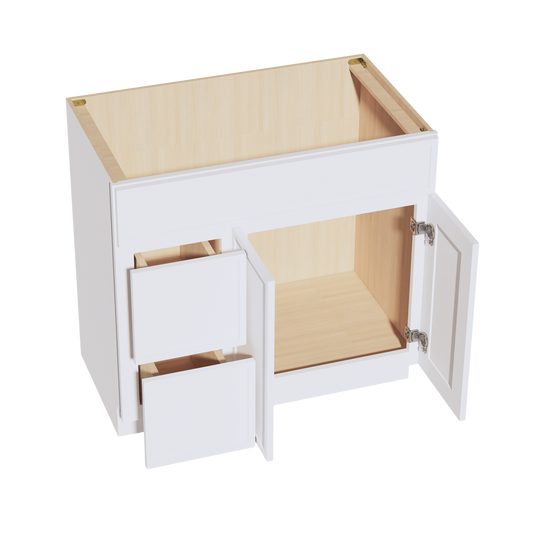 Venus CabinetrySF-VSD3621R: Frost White Slim Shaker 36"W x 34-1/2"H x 21"D 2 Doors & 2 Right Drawers Offset Vanity Sink Base Cabinets