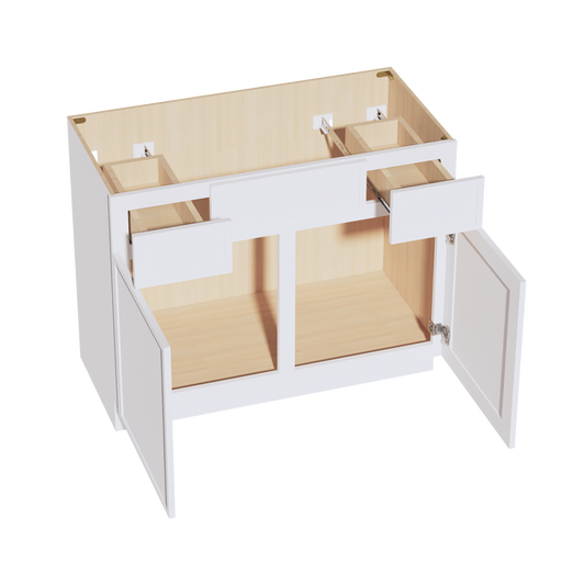 Venus CabinetrySF-VSD4221: Frost White Slim Shaker 42"W x 34-1/2"H x 21"D 2 Doors, 2 Drawers & 1 False Drawer Centered Vanity Sink Base Cabinets