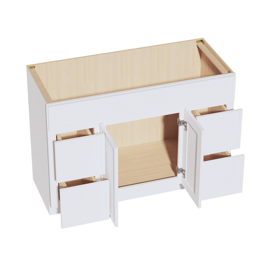 Venus CabinetrySF-VSD4821: Frost White Slim Shaker 48"W x 34-1/2"H x 21"D 2 Doors, 4 Drawers & 1 False Drawer Centered Vanity Sink Base Cabinets