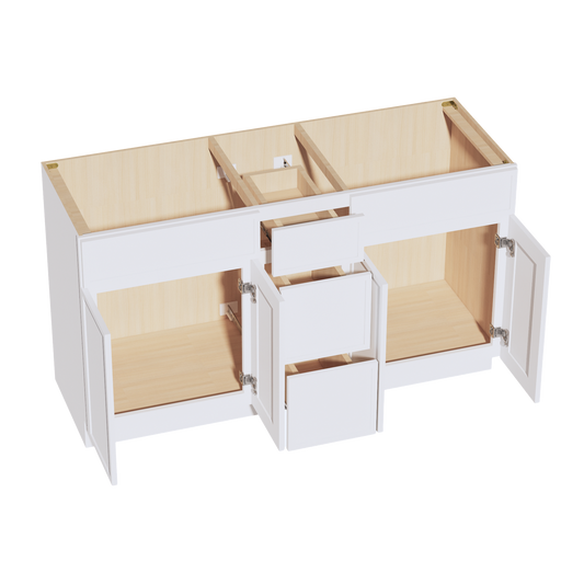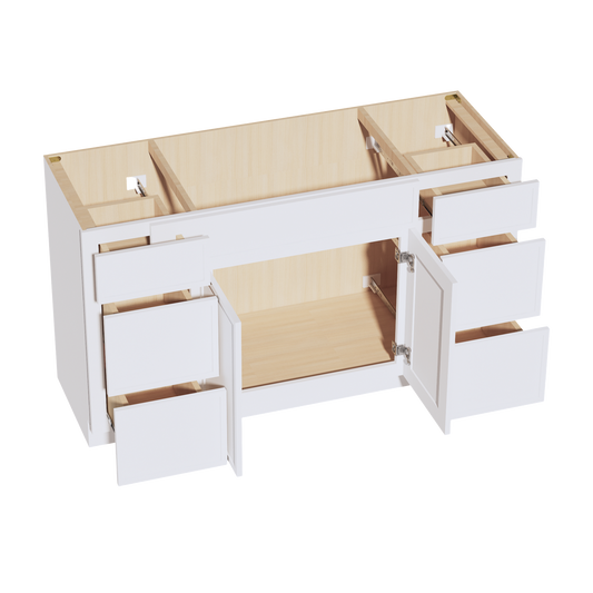 Venus CabinetrySF-VSD60DOUBLE: Frost White Slim Shaker 60"W x 34-1/2"H x 21"D 4 Doors, 3 Drawers & 2 False Drawers Double Sink Vanity Base Combo Cabinets