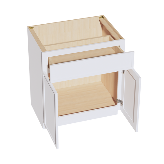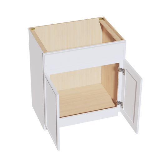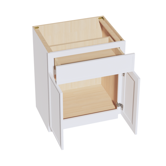 Venus CabinetrySF-VB2721: Frost White Slim Shaker 27"W x 34-1/2"H x 21"D 2 Doors & 1 Drawer Double Door Vanity Base Cabinets