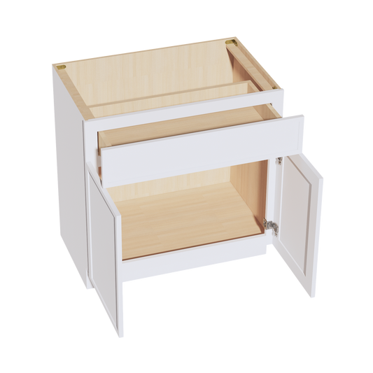 Venus CabinetrySF-VB3321: Frost White Slim Shaker 33"W x 34-1/2"H x 21"D 2 Doors & 1 Drawer Double Door Vanity Base Cabinets