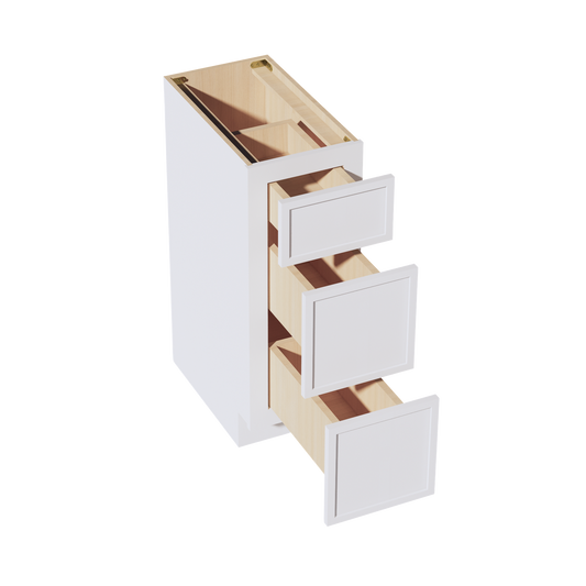 Venus CabinetrySF-VDB1221: Frost White Slim Shaker 12"W x 34-1/2"H x 21"D 3 Drawers Vanity Base Cabinets