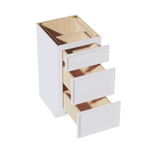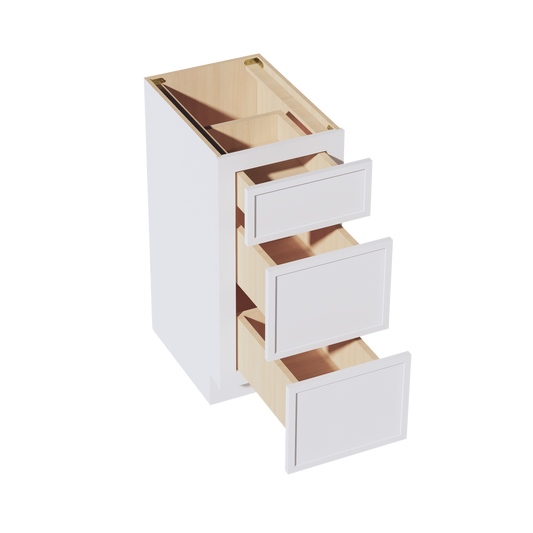 Venus CabinetrySF-VDB1521: Frost White Slim Shaker 15"W x 34-1/2"H x 21"D 3 Drawers Vanity Base Cabinets