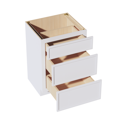 Venus CabinetrySF-VDB1821: Frost White Slim Shaker 18"W x 34-1/2"H x 21"D 3 Drawers Vanity Base Cabinets