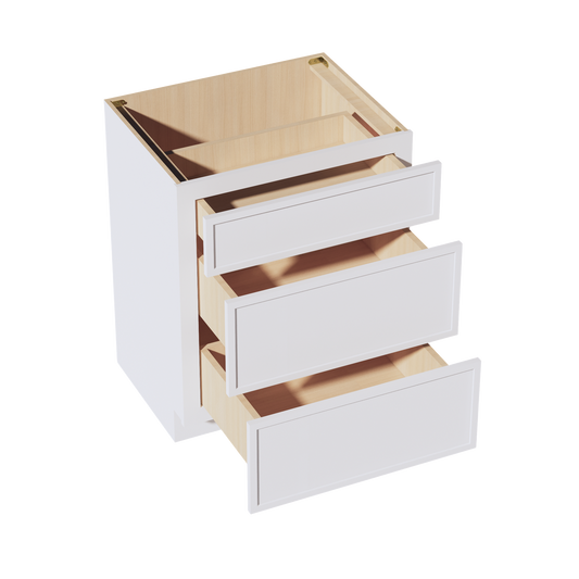 Venus CabinetrySF-VDB2421: Frost White Slim Shaker 24"W x 34-1/2"H x 21"D 3 Drawers Vanity Base Cabinets