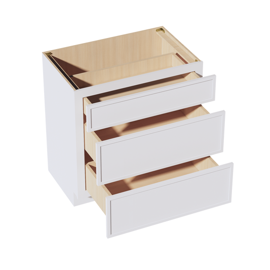 Venus CabinetrySF-VDB3021: Frost White Slim Shaker 30"W x 34-1/2"H x 21"D 3 Drawers Vanity Base Cabinets