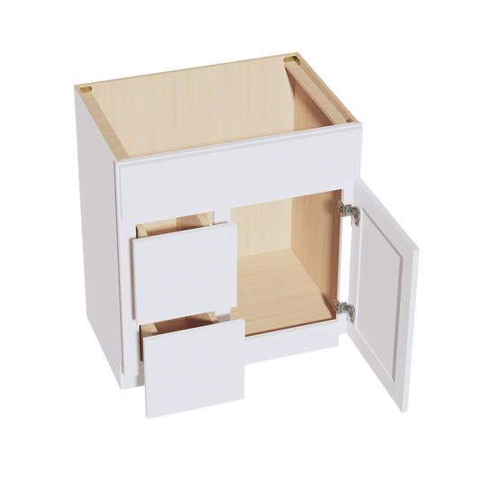 Venus CabinetrySF-VSD3021L: Frost White Slim Shaker 30"W x 34-1/2"H x 21"D 1 Door & 2 Left Drawers Offset Vanity Sink Base Cabinets