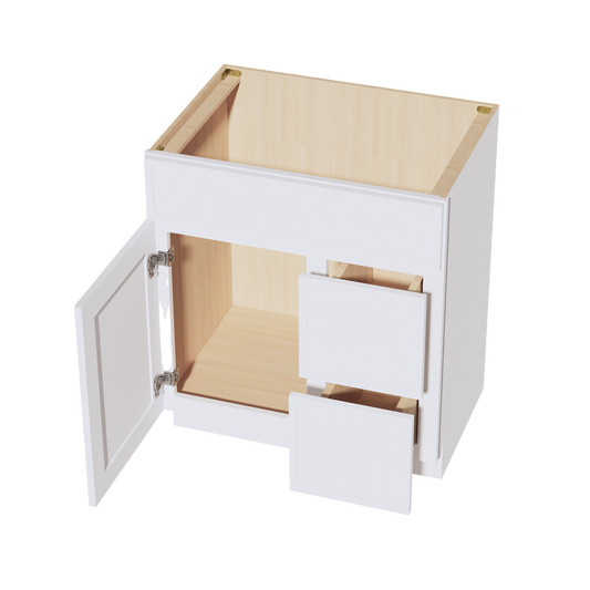 Venus CabinetrySF-VSD3021R: Frost White Slim Shaker 30"W x 34-1/2"H x 21"D 1 Door & 2 Right Drawers Offset Vanity Sink Base Cabinets