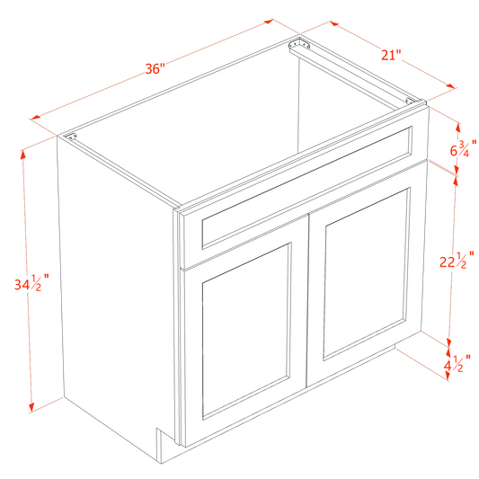 Venus CabinetrySF-VB3621: Frost White Slim Shaker 36"W x 34-1/2"H x 21"D 2 Doors & 1 Drawer Double Door Vanity Base Cabinets