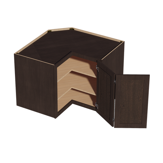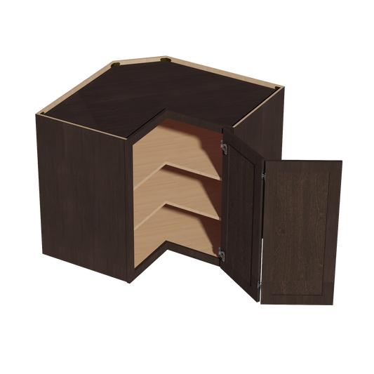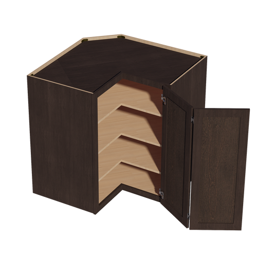 Venus CabinetrySM-WPC2430: Mocha Brown Slim Shaker 24"W x 30"H 1 Door & 2 Shelves Pie Cut Wall Corner Cabinet