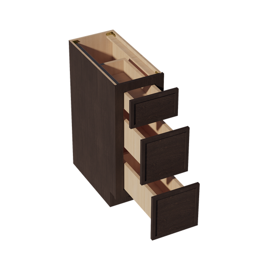 Venus CabinetrySM-DB12: Mocha Brown Slim Shaker 12" 3 Drawers Base Cabinet