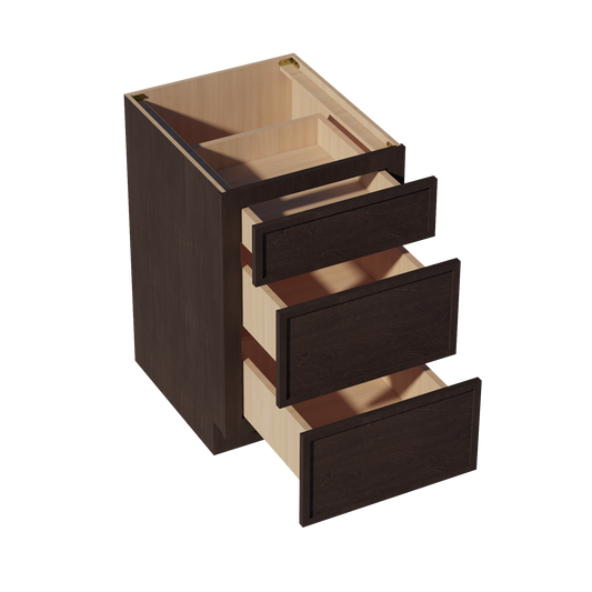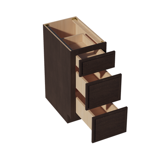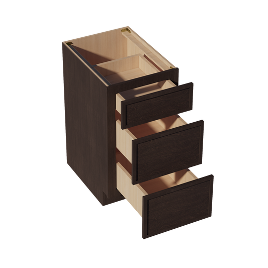 Venus CabinetrySM-DB15: Mocha Brown Slim Shaker 15" 3 Drawers Base Cabinet