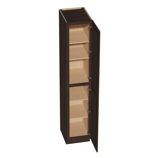 Venus CabinetrySM-TP1890: Mocha Brown Slim Shaker 18"W x 90"H x 24"D 2 Doors & 5 Shelves Tall Shelf Pantry Cabinets