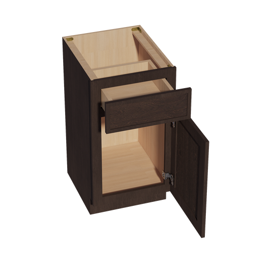 Venus CabinetrySM-VB1521: Mocha Brown Slim Shaker 15"W x 34-1/2"H x 21"D 1 Door & 1 Drawer Single Door Vanity Base Cabinets