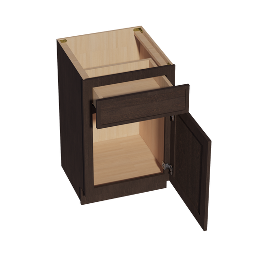 Venus CabinetrySM-VB1821: Mocha Brown Slim Shaker 18"W x 34-1/2"H x 21"D 1 Door & 1 Drawer Single Door Vanity Base Cabinets