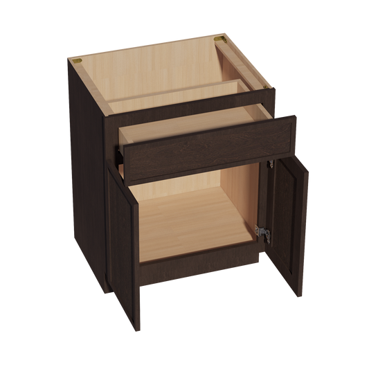 Venus CabinetrySM-VB2421: Mocha Brown Slim Shaker 24"W x 34-1/2"H x 21"D 2 Doors & 1 Drawer Double Door Vanity Base Cabinets
