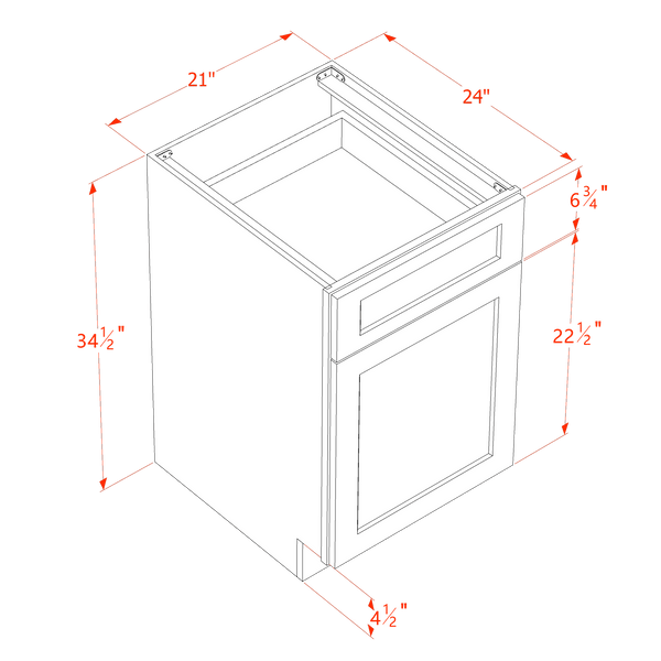 Venus CabinetryHA-B21: Ash Gray Shaker 21" 1 Drawer 1 Door Standard Base Cabinet